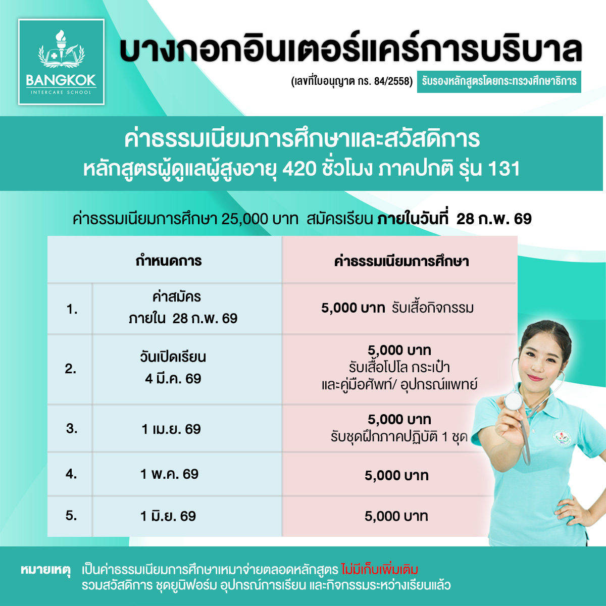 - เปิดเรียน 4 มี.ค. 69 ชำระ 5,000 บาท