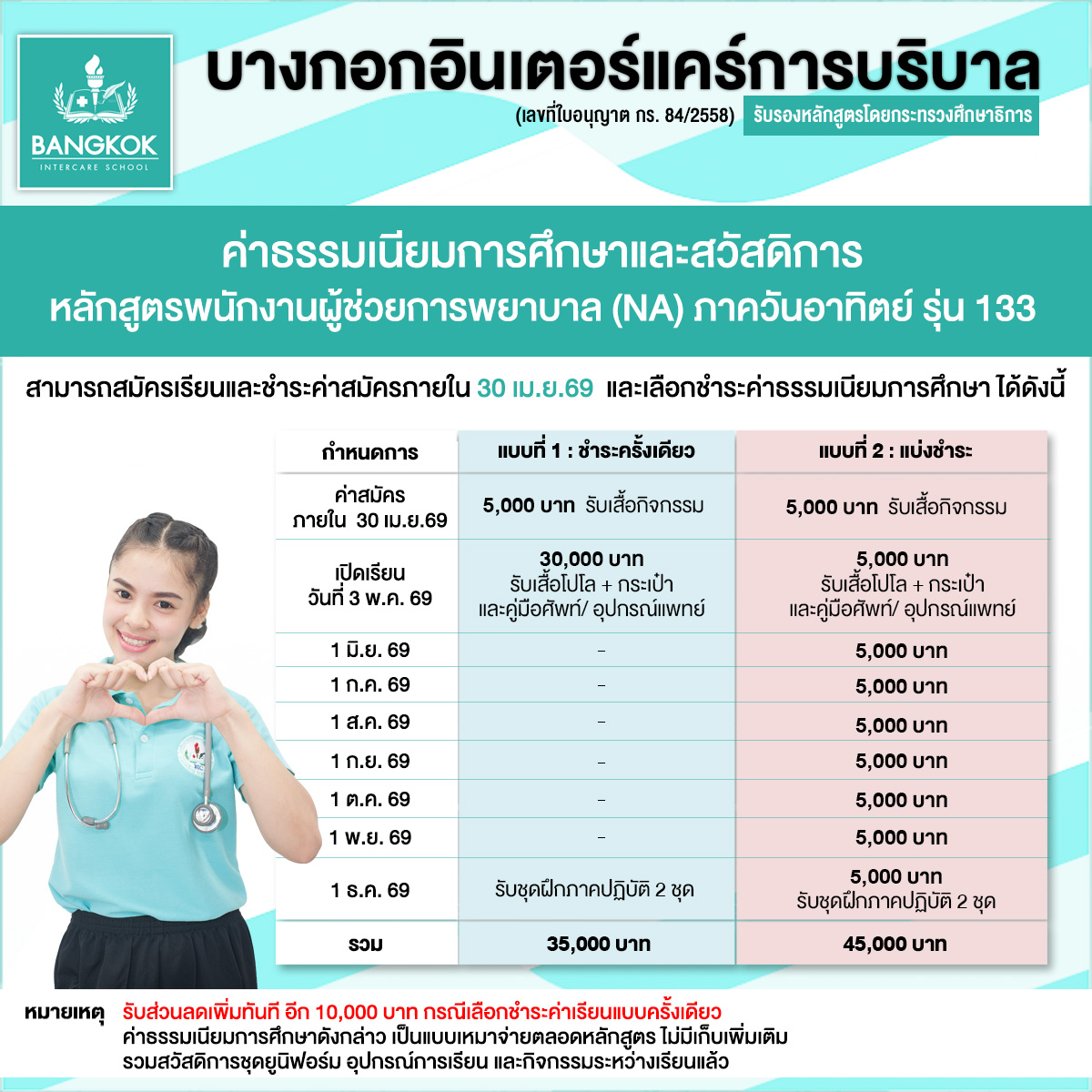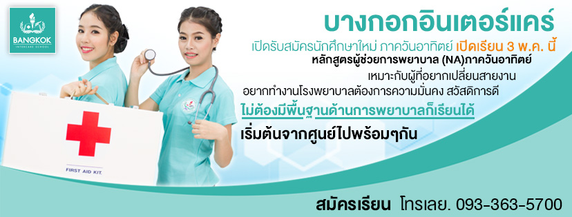 หลักสูตร พนักงานผู้ช่วยการพยาบาล (NA) ภาควันอาทิตย์ รุ่น 133 เริ่มเรียน 3 พ.ค. 69